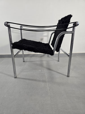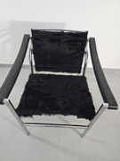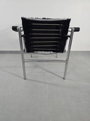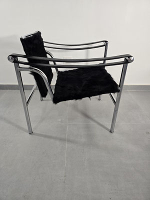 Fauteuil LC1 Le Corbusier, Charlotte Perriand, assise et dossier en peau de Poulain noir, accoudoirs cuir noir, excellent état.
