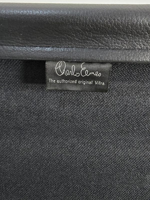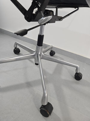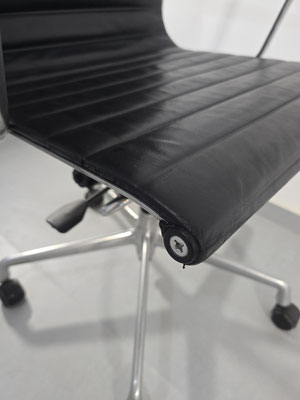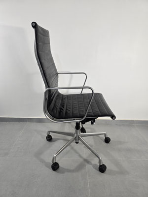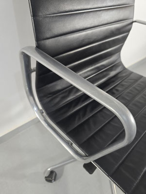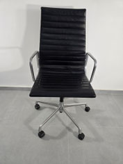 Fauteuil de bureau EA 119 Eames par Vitra, cuir noir excellent état, patine au niveau des accoudoirs.