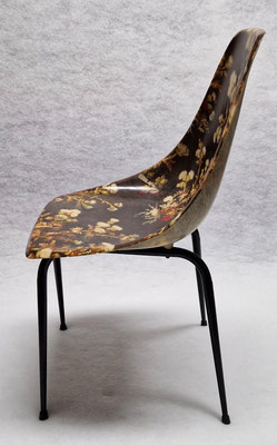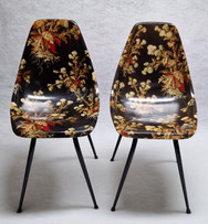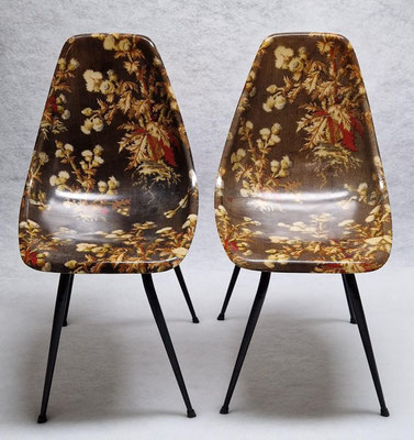 4 chaises par René Jean Caillette en fibre de verre vers 1950, 2 chaises un peu décolorés, très bon état.