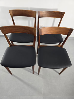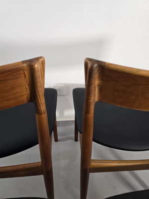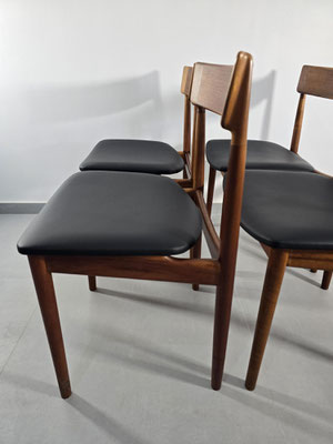 Structure en teck et cuir noir par Harry Rosengren Hansen pour Brande Mobelindustri, assises entièrement restauré, garniture et cuir pleine fleur, le bois est en très bon état.